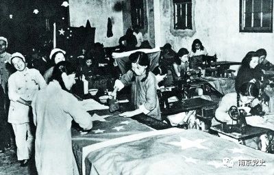 开国大典前夕,南京被服厂的工人们在赶制五星红旗。