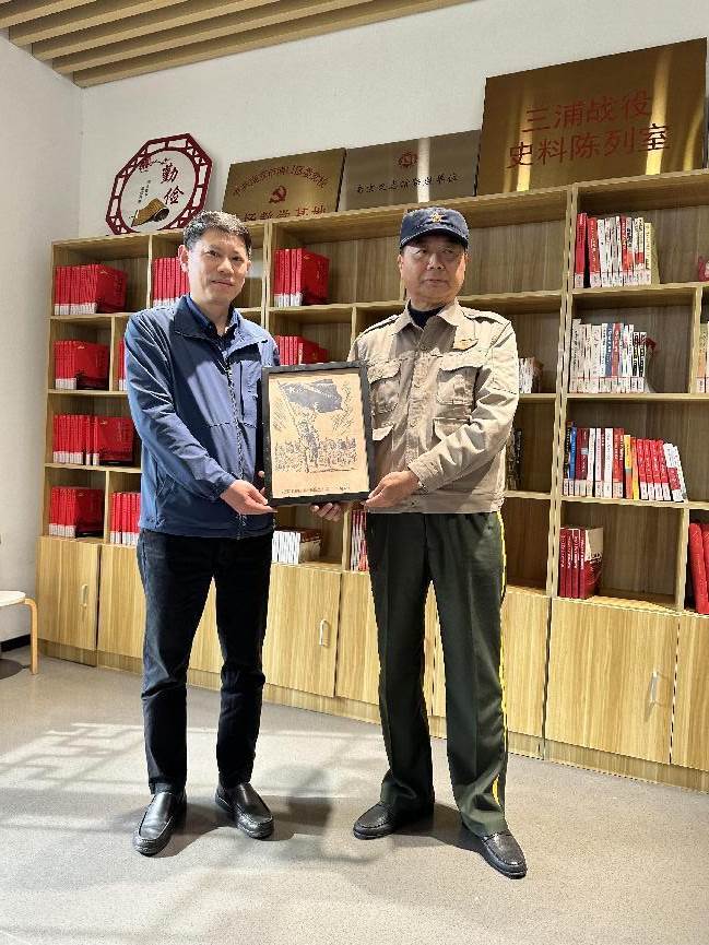 在渡江战役胜利暨南京解放75周年前夕,当年参加三浦战役(江浦、浦镇、浦口)的原解放军第35军第103师第309团二营五连三排副排长范春振,时任第八兵团司令员、开国上将陈士榘之子陈人康等,先后到三浦战役史料陈列室参观,并祭扫先烈。