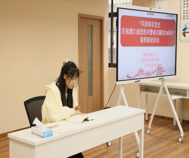 根据学习贯彻习近平新时代中国特色社会主义思想主题教育总要求,结合《南京市2021—2025年党史工作规划》和南京书香城市建设部署,发挥“社区党史讲习所”在党史学习教育中的品牌优势和基地作用,积极推动党史学习教育常态化长效化,4月23日,秦淮区委党史办在五老村社区党史讲习所开展“共读南京党史·庆祝渡江战役胜利暨南京解放74周年”阅读活动。在阅读分享环节,社区3