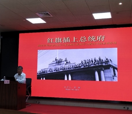 市委党史办向夫子庙文旅集团赠送党史书籍。南京党史宣讲辅导团专家、江苏省政协办公厅原一级调研员、南京中国近现代史遗址博物馆原党总支委员刘刚以《红旗插上总统府》为题,呈现了一堂精彩的党史课。通过丰富的口述历史细节,深刻剖析了解放战争胜利的必然性。授课结束后,由南京中国科举博物馆党员汪俊涛、李丽为大家带来情景宣讲《红色的柱石——王荷波》,讲述了王荷波同志的革命事迹和崇高精神。