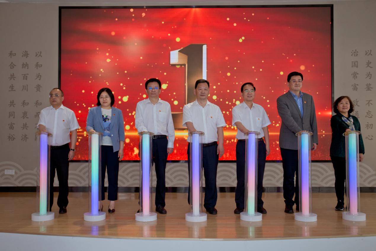 邢光龙等为江苏省党史教育基地——南京民间抗日战争博物馆授牌,为铁心桥街道政协工委“委员讲堂”和“春牛首”民俗工作室授牌。各单位代表共同启动“中流砥柱——中国共产党抗战文献展”开展气球按钮。
