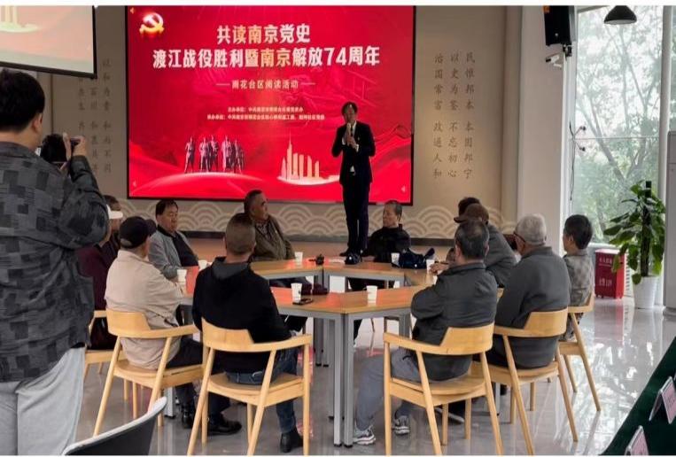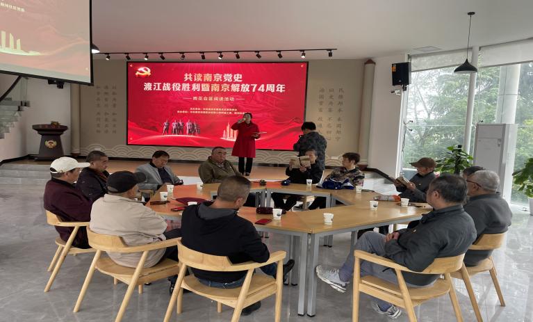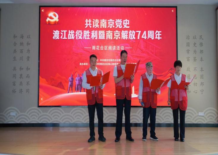 4月23日上午,以“庆祝渡江战役胜利暨南京解放74周年”为主题的阅读活动在雨花台区铁心桥街道新河社区党史讲习所举行。