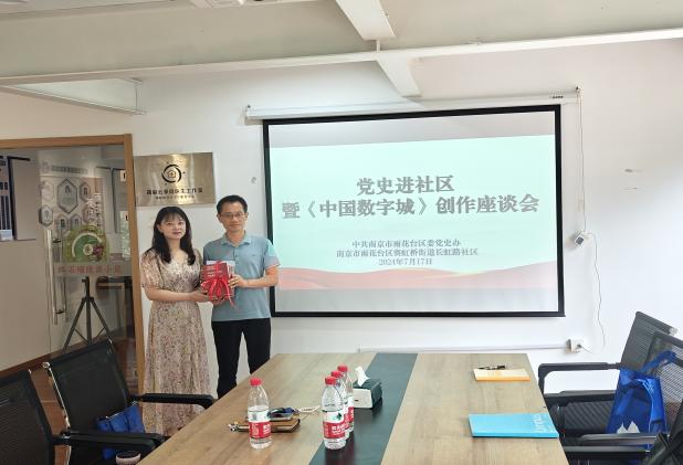 为认真贯彻国家和省市数字经济发展战略部署,全面反映雨花台区“打造新滨江、建设数字城”的最新成就,继长篇纪实文学《软件之路》出版后,雨花台区委党史办开始《软件之路》姊妹篇《中国数字城》的创作。为进一步收集资料,区委党史办前往数字党建工作较为突出的长虹路社区开展创作访谈。会上,针对社区基本概况、在数字社区建设、数字党建、数字养老等方面的成功实践及未来希望结对共建单位提供帮扶等方面进行了访谈交流。长虹路社区以党建为抓手,通过契约化共建方式,借助“数字化+铁脚板”的形式,与区纪委监委、港华燃气、延龄荟等单位开展结对共建,为辖区内独居老人、低保户、困境儿童、中小学生等群体提供帮助,切实提升为民服务水平与效率。雨花台区委党史办陈明太主任对社区借助数字党建开展为一老一小服务的具体举措、案例、实际效果、推广情况等表示肯定,对相关问题作了进一步访谈了解。访谈结束后,雨花台区委党史办向社区赠送了近年来本办编撰的党史书籍,进一步提升党史进社区活动效果。