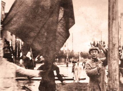 首次国旗升旗典礼,副市长柯庆施升起了南京第一面五星红旗。(晓庄提供)