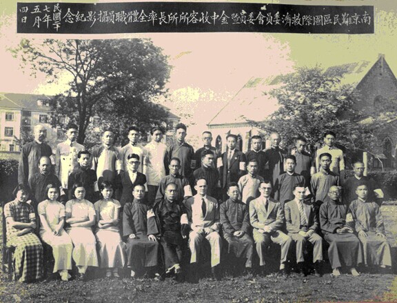 1938年5月4日,南京难民区国际救济委员会委员暨金陵大学附属中学难民收容所全体职员合影,