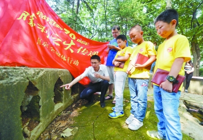 • 日前,南京报业传媒集团全媒体记者和小记者,在抗战史学者胡卓然的带领下,寻访清凉山炮台遗迹。