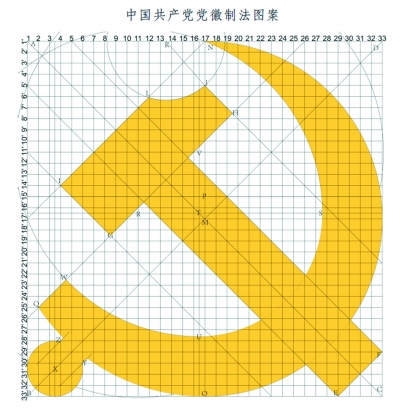 党徽图案切于8×8小方格的正方形内,正方形的上部与旗上边空3格,左侧与旗左边空4格。