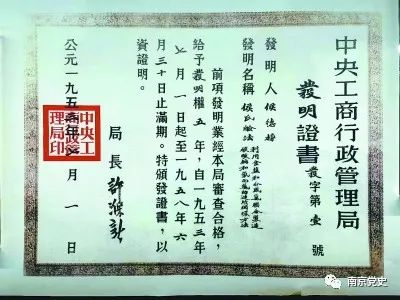 在渡江路1号的“人间正道是沧桑——中国共产党南京历史展览”上,展出了一张1953年颁发的“新中国第一号发明证书”。薄薄的一张证书,从一个小切口折射出了一部波澜壮阔的现代中国化工史,是中国石化工业的里程碑。该技术发明人是著名科学家、南化公司前身永利铔厂厂长侯德榜。南化公司相关负责人向记者介绍了这张发明证书背后的故事。