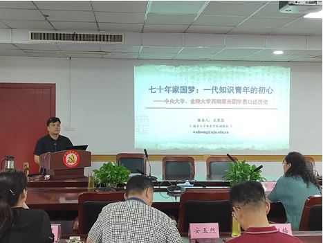 • 为推动南京党史工作高质量发展,提升口述史采集、整理、研究相关技能,814日上午,市委党史办邀请南京大学历史学院副教授武黎嵩,结合西南服务团口述史采集项目,举办了题为《七十年家国梦:一代知识青年的初心——中央大学、金陵大学西南服务团学员口述历史》专题培训。