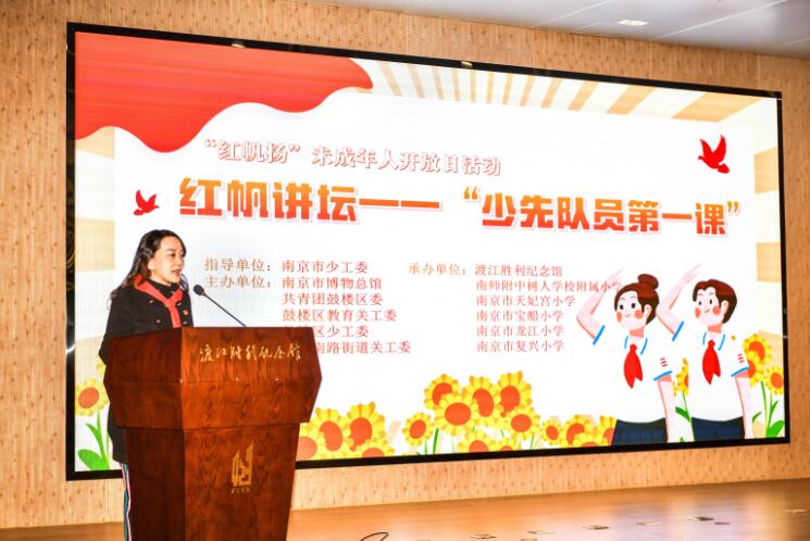 2月29日,由南京市博物总管、共青团鼓楼区委、鼓楼区少工委等主办,渡江胜利纪念馆、南师附中树人学校附属小学、南京市天妃宫小学等承办的“红帆扬”未成年人开放日活动暨红帆讲坛——“少先队员第一课”在渡江胜利纪念馆举办。参加活动的少先队员们在渡江胜利纪念馆报告厅列队肃立,齐唱《中国少年先锋队队歌》;接着,渡江胜利纪念馆“小红帆”宣讲团代表为少先队员们声情并茂地讲述红旗渠的故事;在讲解员带领下,少先队员们又参观了“人间正道是沧桑——中国共产党南京历史展览”,深入了解中国共产党在南京的百年奋斗史和伟大建党精神。通过参加活动,少先队员们进一步明白了幸福生活来之不易,表示要努力学习,长大后为建设祖国作贡献。
