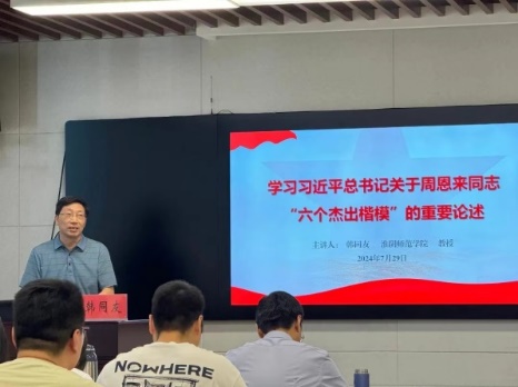 培训中,淮阴师范学院党委副书记韩同友作“六个杰出楷模”重要论述专题辅导,恩来干部学院副院长郑超作《周恩来的领导风范》专题辅导,恩来干部学院教师崔瑞结合“严于律己的楷模”解读《中国共产党纪律处分条例》。