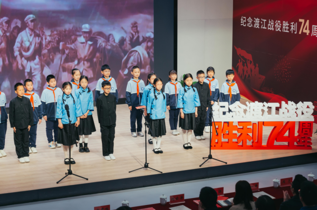 “钟山风雨起苍黄,百万雄师过大江……”来自琅琊路小学天润城分校的学生代表深情诵读《七律·人民解放军占领南京》,表达对先烈的崇敬之心、传承之志;光明日报社江苏记者站原站长郑晋鸣,带领观众重温了在江北热土上发生的英雄故事。