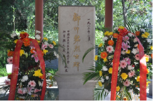 丰碑矗立、松柏常青,绿水青山映忠魂。全体人员先后前往竹山公园仲铭亭、邓振询烈士殉难处瞻仰烈士纪念碑,敬献花篮。全体人员庄严肃立默哀,表达对邓振询烈士的深切哀思与崇高敬意。