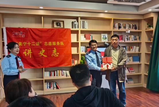 活动中,全体人员实地参观了廉政书屋、职工书屋,共同观看《邓振询》《陶家齐》革命纪录片。稽查局代表情景朗诵《这盛世如你所愿》,区委党史办向稽查局赠送了《火红的圣地》《邓振洵画传》《江宁红色经典连环画》等红色书籍,并在稽查局廉政书屋设立“红色阅读空间”。