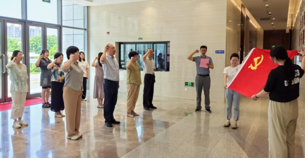 7月1日上午,区委党史办、档案馆和方志办全体党员联合举行重温入党誓词仪式。面对鲜红的党旗,党员们高擎右拳,字字铿锵,用重温誓词回溯入党初心,坚定对党的忠诚。