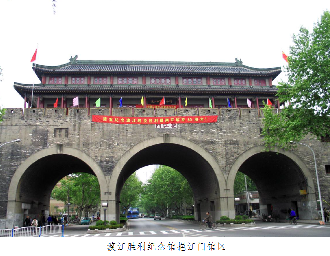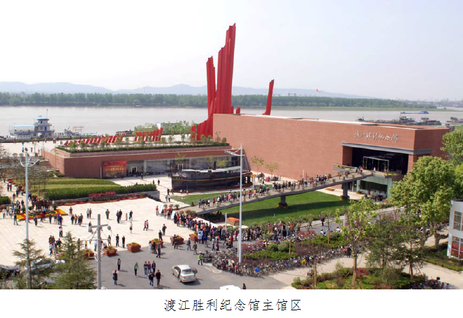 南京渡江胜利纪念馆始建于1984年4月23日。纪念馆建筑面积8200余平方米,展览面积近5000平方米,总占地面积21000平方米,由主馆区、挹江门城楼、渡江胜利纪念碑三部分组成。